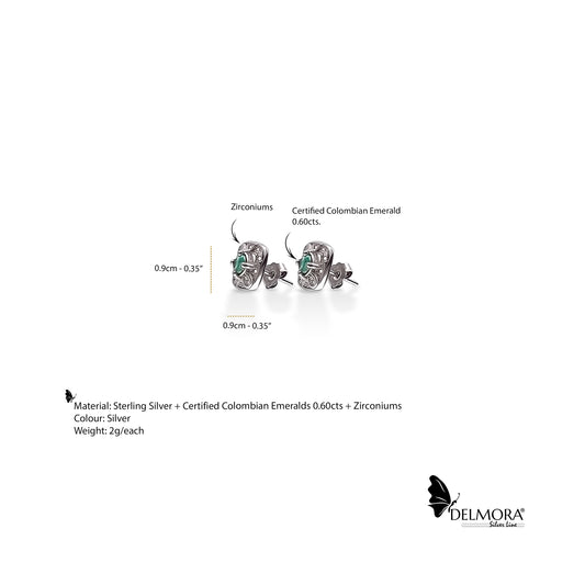 0.60ct Natural Colombian Emerald Round Cut Silver Earrings