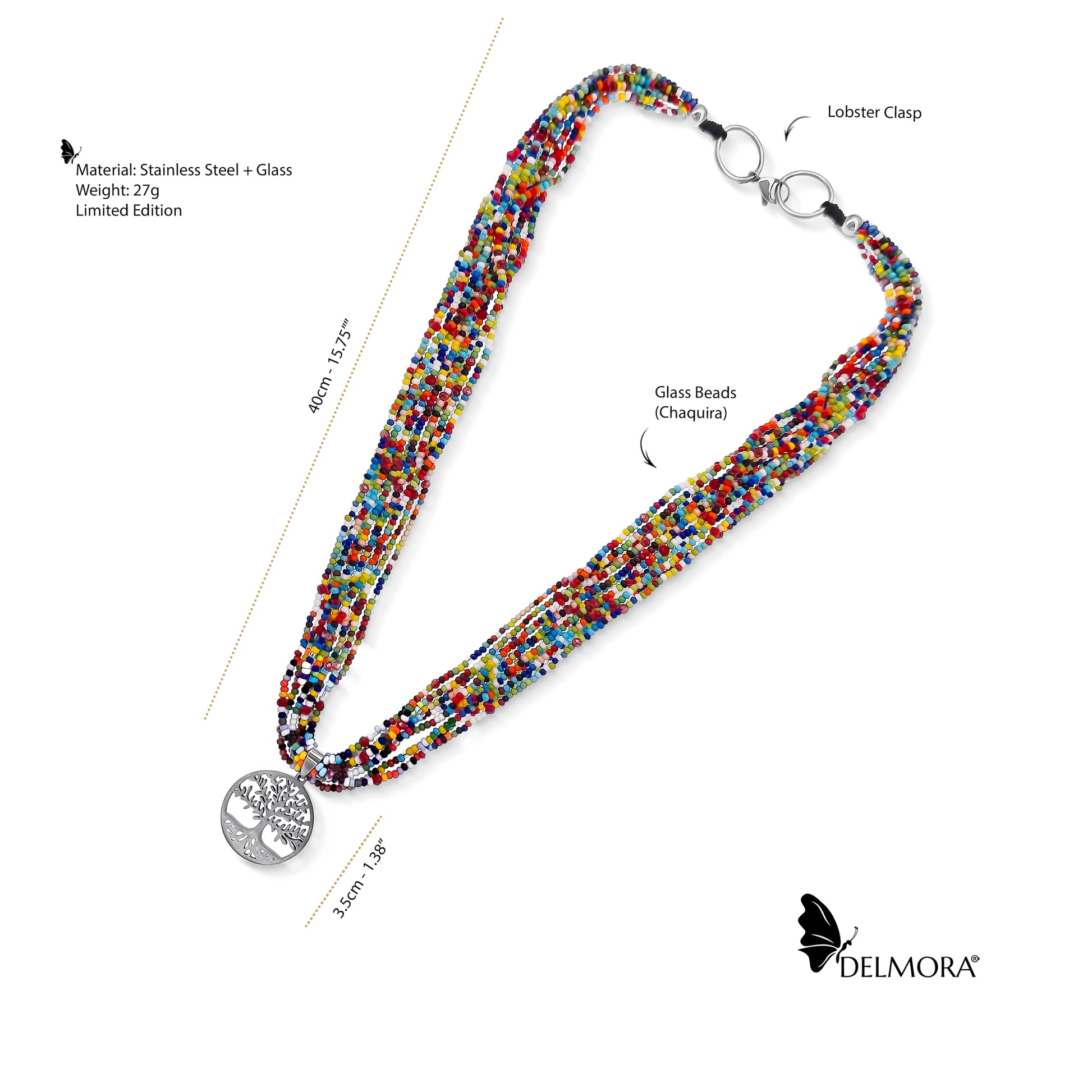| • Colour: Multicoloured + Black Thread + Steel beads. |